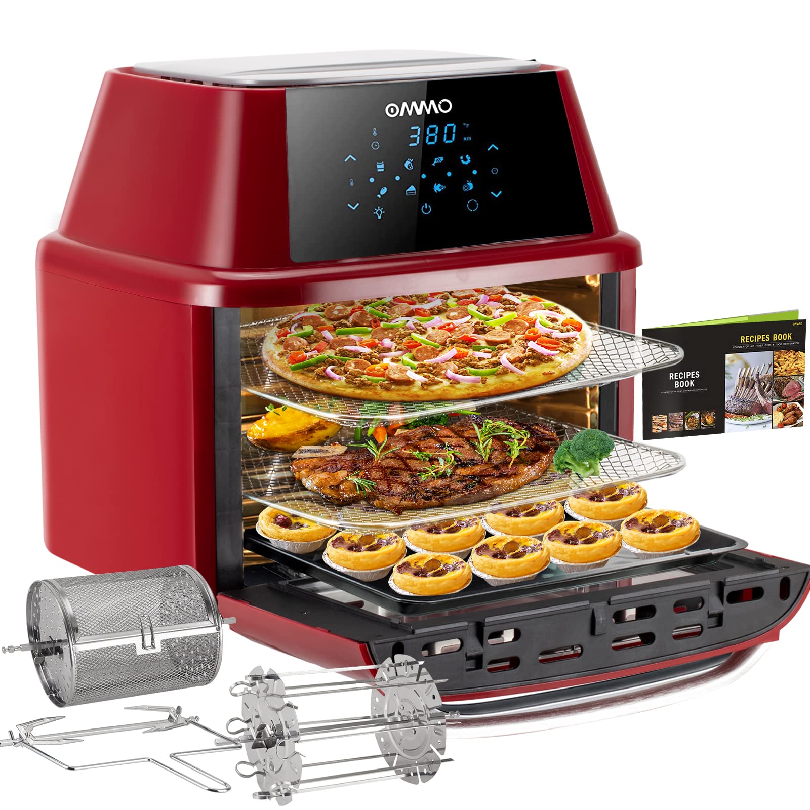 Amazon Com Air Fryer Oven Ommo 17 Quarts 1800w Large Air Fryer Toaster Oven 8 Presets 40 Recipes Oilless Countertop Oven For Air Frying Rotisserie Dehydrating And Baking Dishwasher Safe Accessories